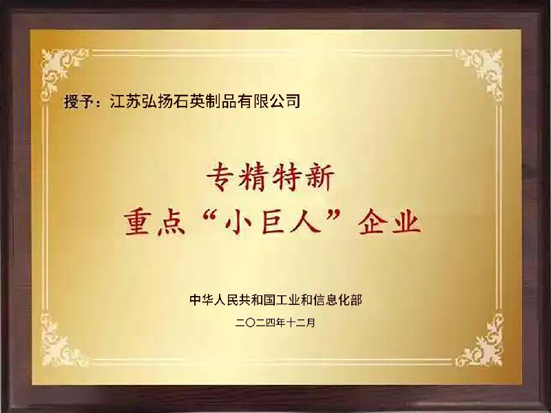 江蘇弘揚(yáng)石英制品有限公司創(chuàng)建于2004年,是一家集石英材料研發(fā)、生產(chǎn)、銷售于一體的科技型企業(yè)。公司產(chǎn)品主要有:高純度石英砂,石英管、石英棒、石英板,石英擴(kuò)散管、石英舟、石英舟托等石英器件,主要應(yīng)用于光源、光伏、半導(dǎo)體、激光、航空航天等領(lǐng)域。弘揚(yáng)石英專注產(chǎn)品開發(fā),憑借一體化的全產(chǎn)業(yè)鏈優(yōu)勢(shì)、行業(yè)領(lǐng)先的高質(zhì)量產(chǎn)品,與上下游龍頭企業(yè)建立長(zhǎng)期穩(wěn)定的合作關(guān)系,公司是國(guó)家專精特新小巨人企業(yè)、國(guó)家知識(shí)產(chǎn)權(quán)優(yōu)勢(shì)企業(yè)、國(guó)家知識(shí)產(chǎn)權(quán)示范企業(yè)、國(guó)家高新技術(shù)企業(yè)、全國(guó)創(chuàng)新型中小企業(yè)、省科技型企業(yè)、省創(chuàng)新能力示范企業(yè)、省民營(yíng)科技企業(yè)、省質(zhì)量誠(chéng)信5A級(jí)品牌企業(yè)、省兩化融合管理體系貫標(biāo)試點(diǎn)企業(yè) 。先后獲中國(guó)“科技創(chuàng)業(yè)貢獻(xiàn)獎(jiǎng)”、“全國(guó)科技創(chuàng)新型企業(yè)”等榮譽(yù)。
